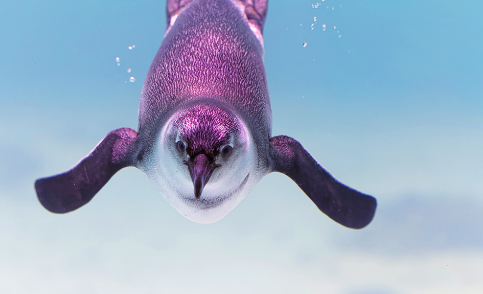 Grâce à de grandes baies vitrées, découvrez des vues subaquatiques incroyables sur cet oiseau nageur et joueur.