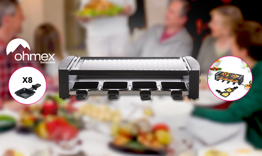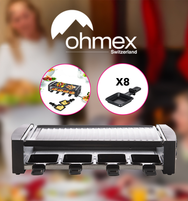 Appareil à raclette et grill 2en1 (8 personnes) Ohmex