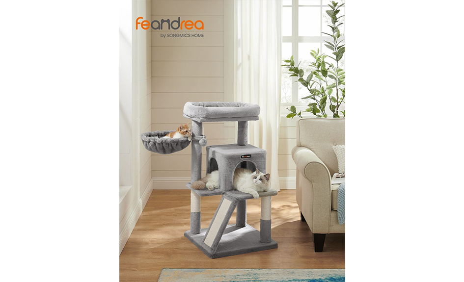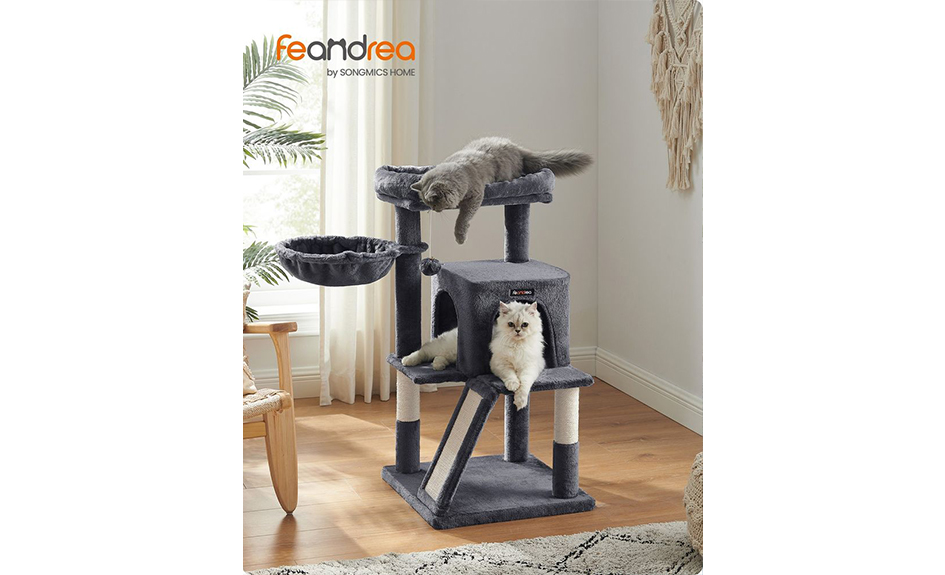 Arbre à chat avec planche à gratter, cabane et pompon 96 cm FEANDREA