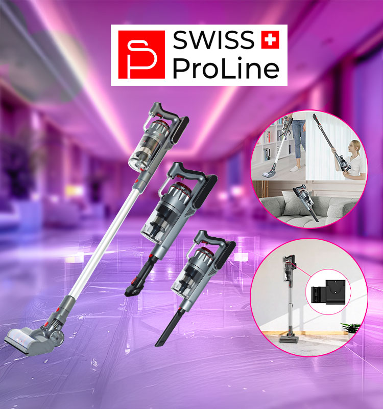 L’Aspirateur Sans Sac Swiss ProLine combine puissance, autonomie et praticité.