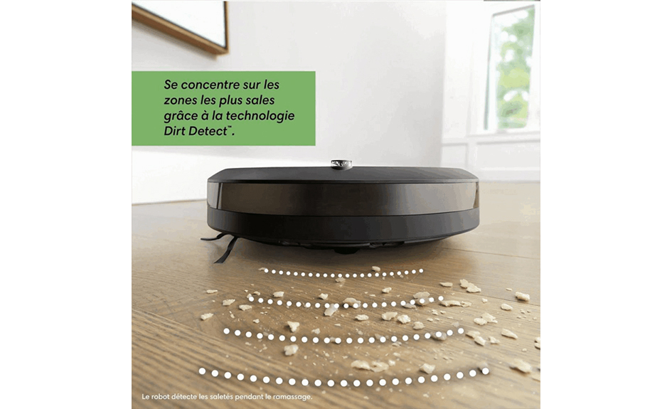 Grâce aux capteurs de saleté Dirt Detect™ brevetés, une exclusivité d’iRobot, l’aspirateur robot Roomba® i1 se concentre sur les pièces qui ont le plus besoin d’être nettoyées, comme les zones de passage de votre domicile.