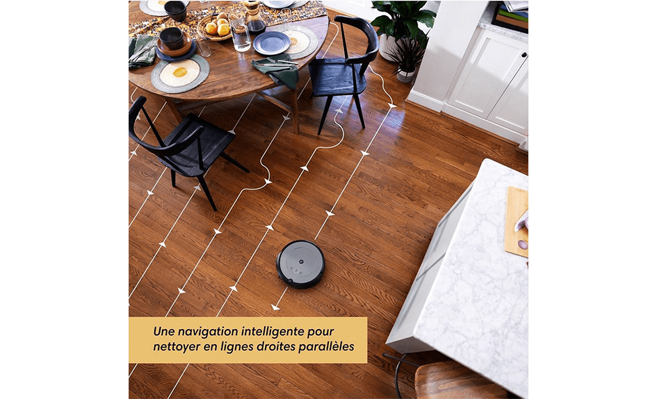 Lancez-vous dans un grand ménage de printemps : l’aspirateur robot Roomba® i1 nettoie de manière logique et pertinente en lignes droites parallèles grâce à ses capteurs de suivi de sol.