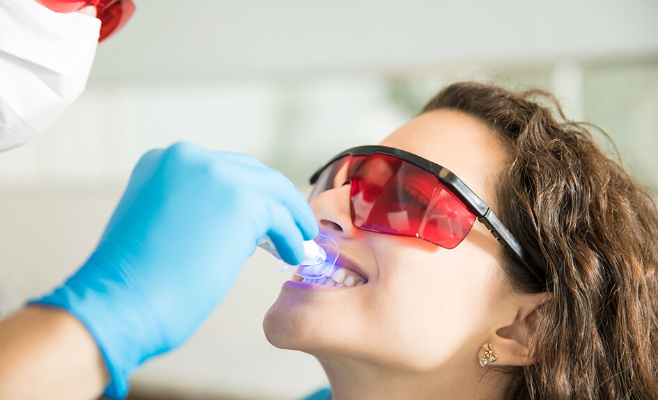 Le soin débute par une préparation de la dentition, suivie de l’application d’un gel blanchissant spécialement formulé.