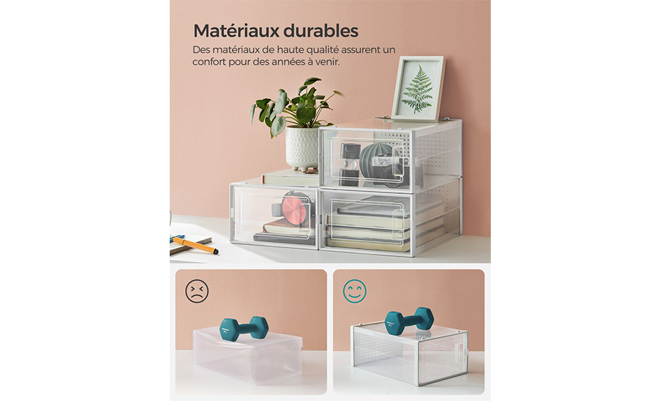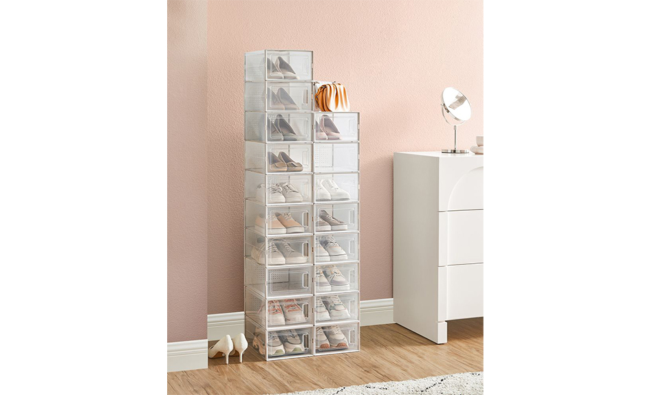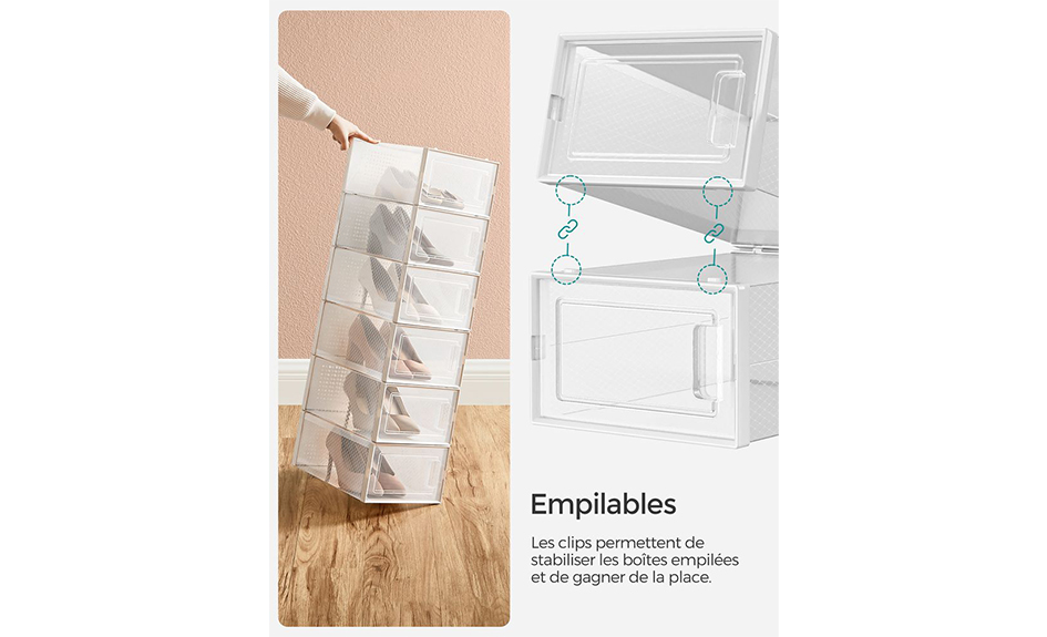 Empilez plusieurs boîtes à chaussures en toute sécurité en optimisant l’espace de rangement vertical.
