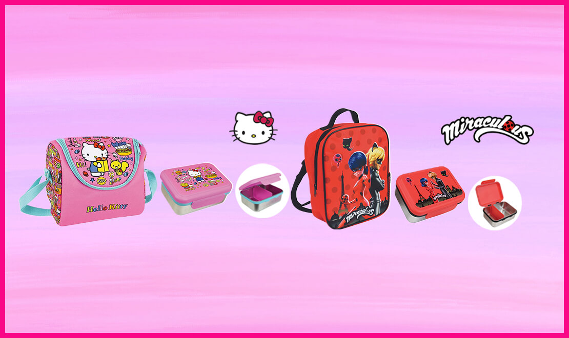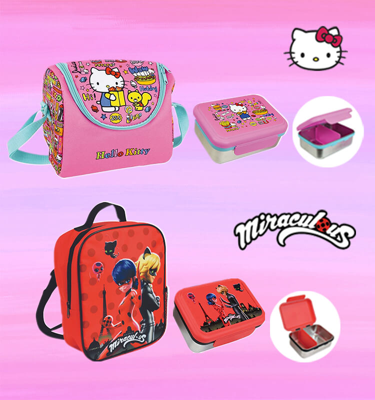 Boîte pour le goûter avec sac isotherme (Hello Kitty ou Miraculous)