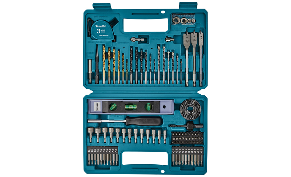 Cet ensemble est soigneusement rangé dans une solide mallette en plastique et se compose d’un vaste jeu de 50 embouts de vissage, d’un set de 21 forets, d’un ensemble de 13 douilles et de 18 accessoires pratiques, dont un mètre ruban et un niveau à bulle.
