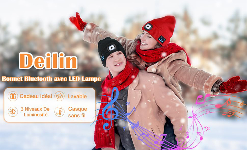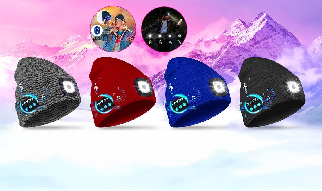 - Flash DEALS - Bonnet connecté Bluetooth avec haut parleur et lumière LED intégrés avec 71% de rabais