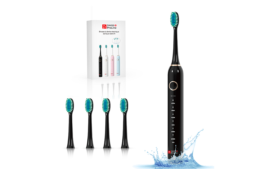 - Flash DEALS - Brosse à dents électrique sonique sans fil avec 4 brossettes Swiss ProLine avec 70% de rabais
