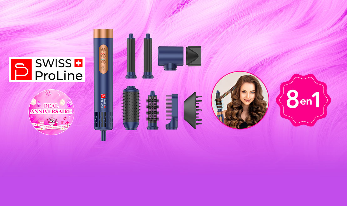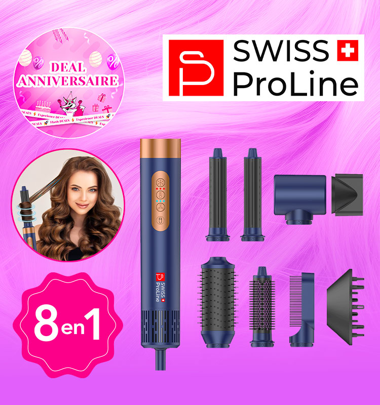 - Flash DEALS - Brosse professionnelle ionique 8en1 (8 accessoires) Swiss ProLine avec 67% de rabais