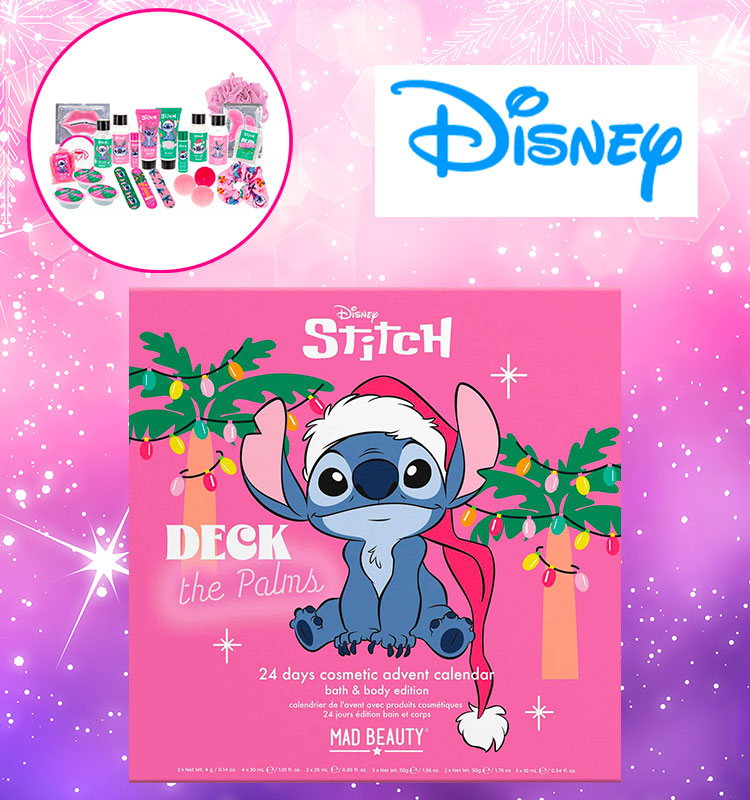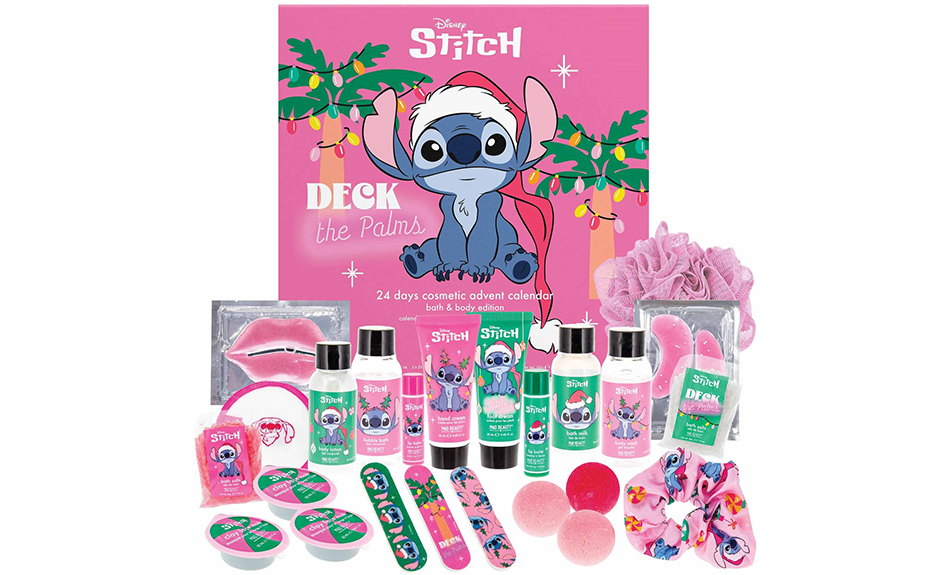Inspiré du personnage attachant de Lilo & Stitch, ce calendrier festif renferme 24 petites surprises bain et beauté à découvrir tout au long du mois.