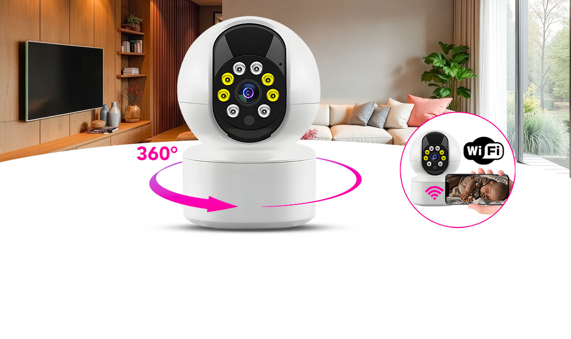Gardez toujours un œil sur votre intérieur ou votre bébé avec cette caméra WiFi intelligente à rotation 360°.