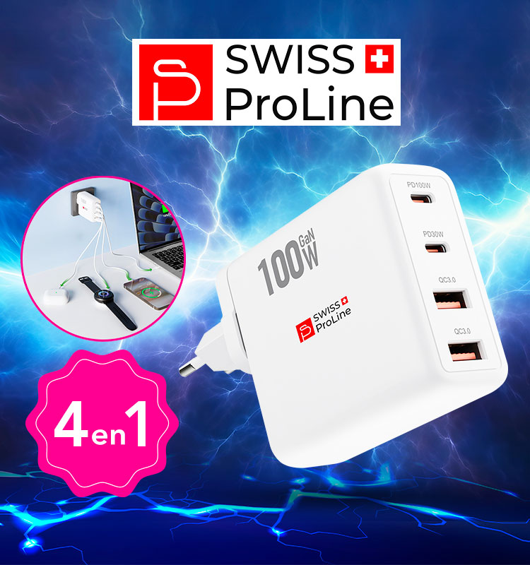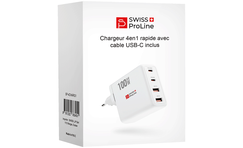 Chargeur 4en1 rapide avec câble USB-C inclus Swiss ProLine