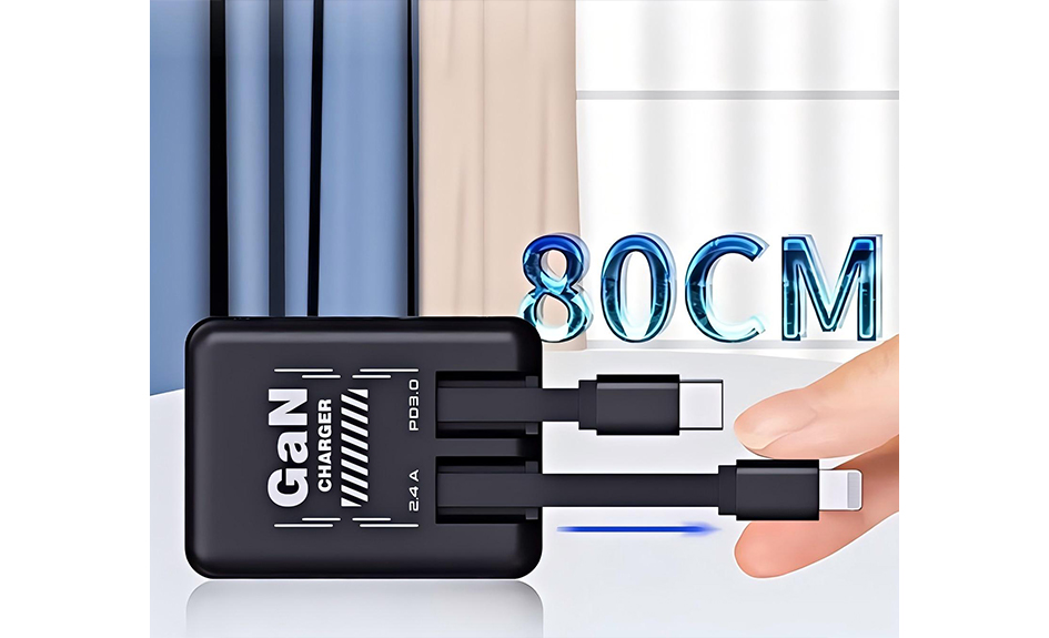 Ce chargeur rétractable 120W intégre un câble Type-C et un câble Type-L rétractables de 80 cm.