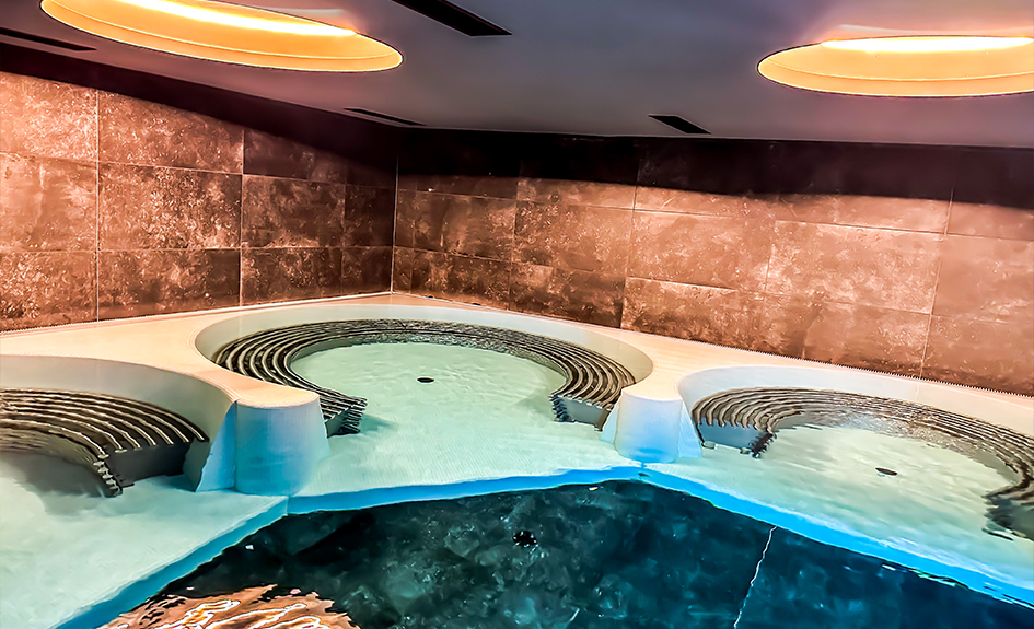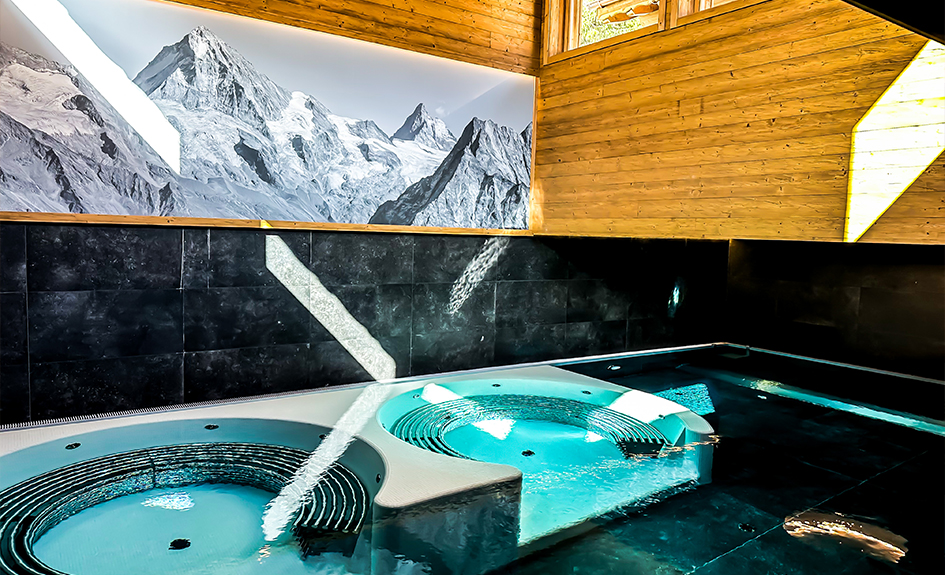 - un bassin intérieur avec 5 jacuzzis