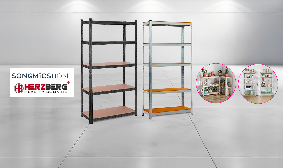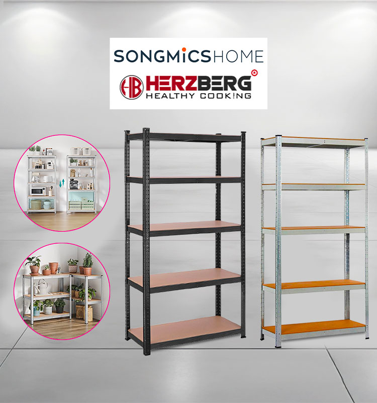 - Etagère de rangement ultra robuste en acier équipée de 5 plateaux HERZBERG-SONGMICS avec 66% de rabais