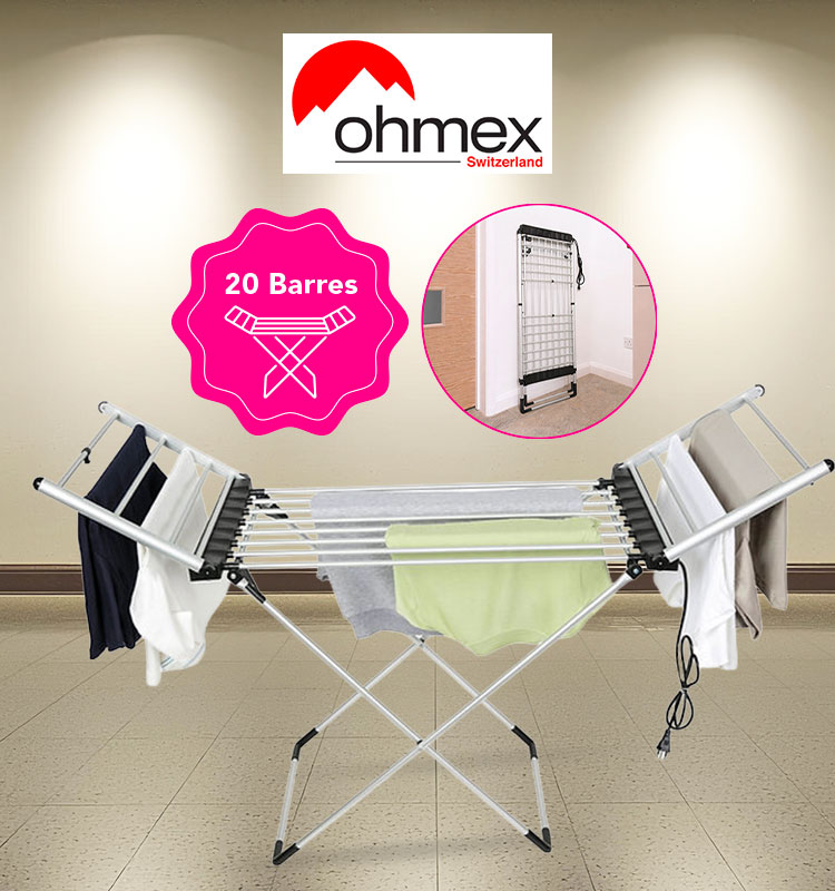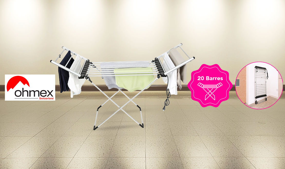 Le séchoir électrique OHM-DRY-2420 est la solution idéale pour sécher votre linge rapidement, même en intérieur.