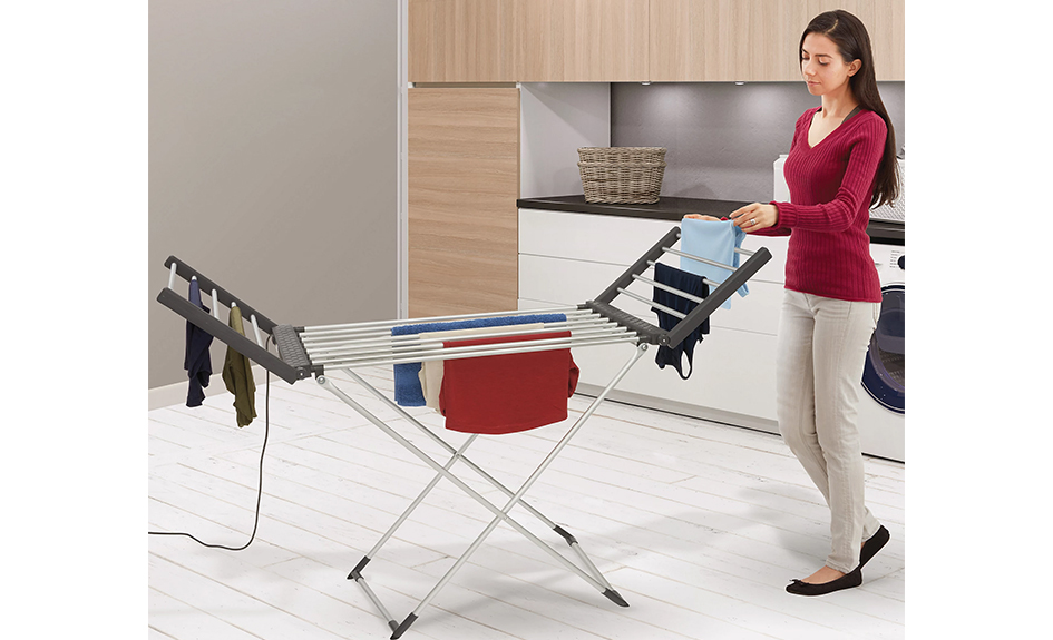 Le séchoir chauffant est plus doux pour les vêtements qu'un sèche-linge et sèche rapidement une charge complète de linge, consommant ainsi moins d'électricité, tout en évitant les vêtements humides laissés sur un séchoir ordinaire pendant l'hiver.