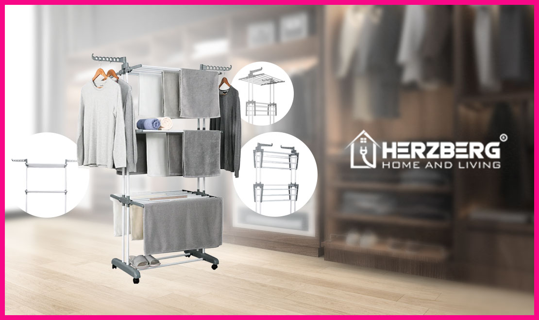 - Etendoir à linge pratique avec 6 étagères pliables Herzberg avec 70% de rabais