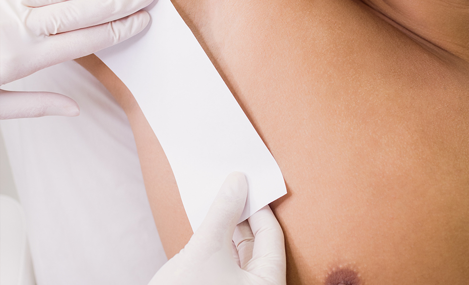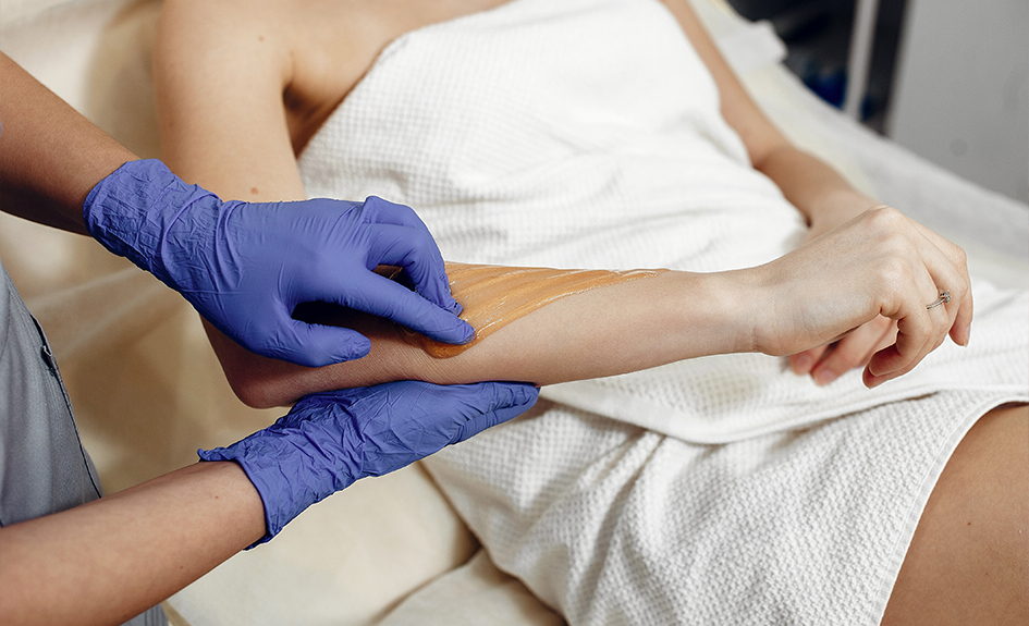 Epilation à la cire chaude sur demi-jambes, aisselles et lèvre