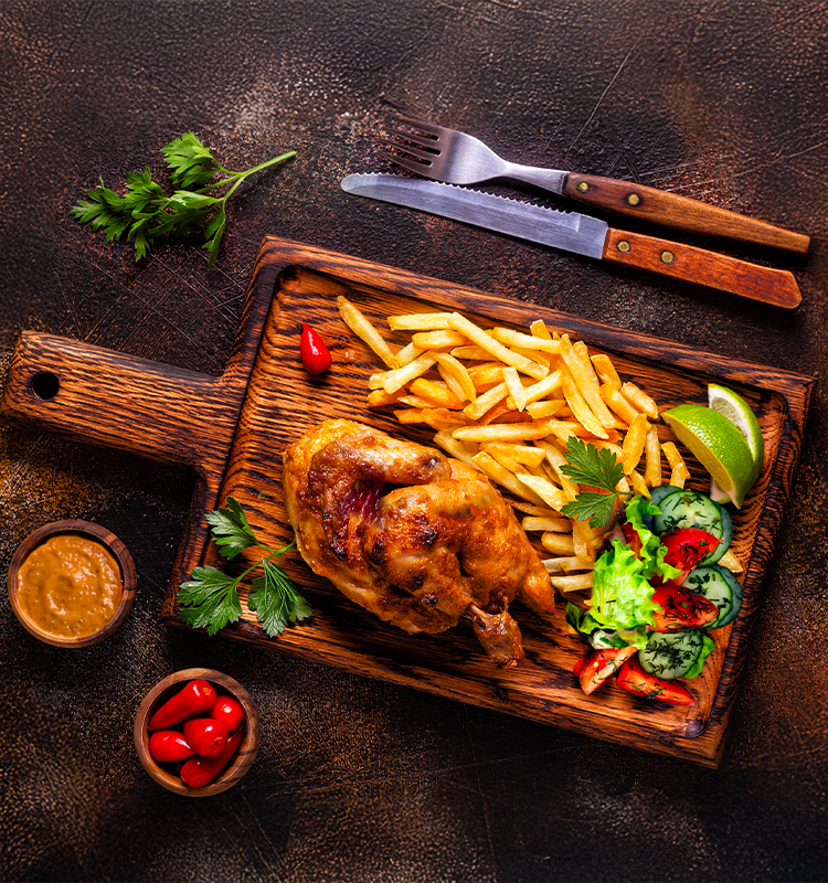Menu Demi-poulet grillé avec entrée et dessert dès 2 personnes