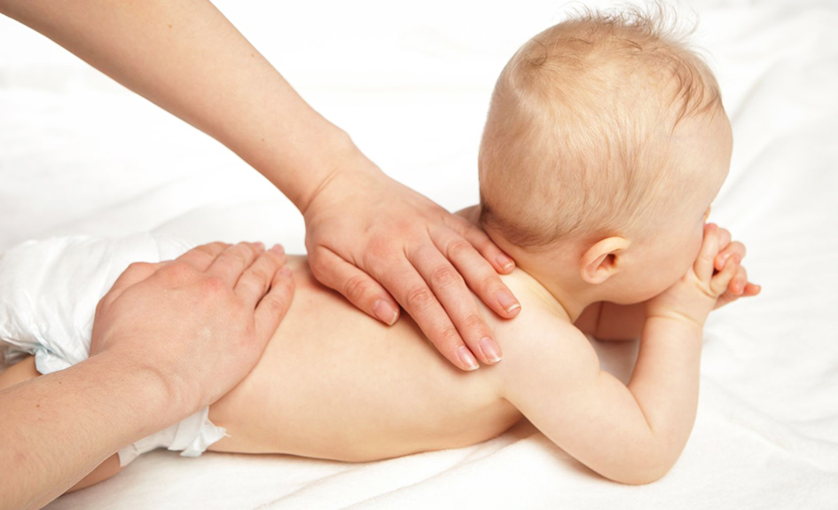 Profitez d’un massage avec bébé en peau à peau, pour une connexion en douceur.