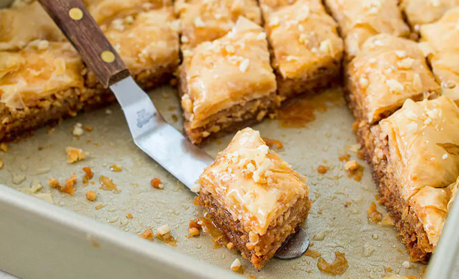 Baklawa : Pâtisseries dorées aux amandes, pistaches et noix