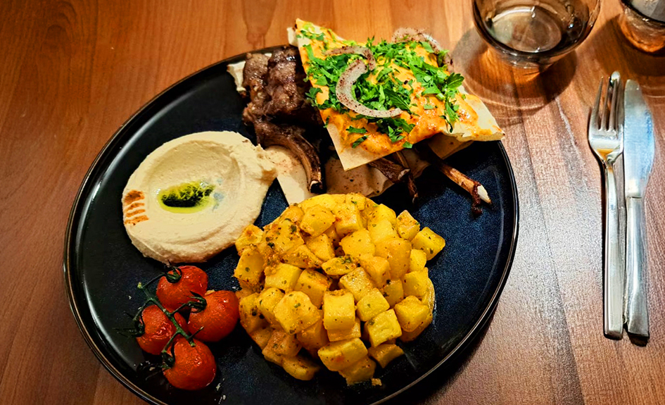 La cuisine met à l’honneur des recettes typiques comme le houmous, le taboulé ou les brochettes de viande marinée, dans un esprit de générosité et de partage.