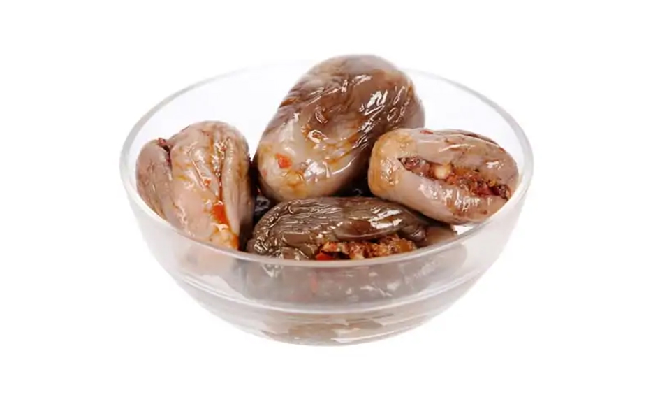 Makdous : Aubergines farcies d’un mélange savoureux de noix, d’ail et de piment, conservées dans de l’huile d’olive