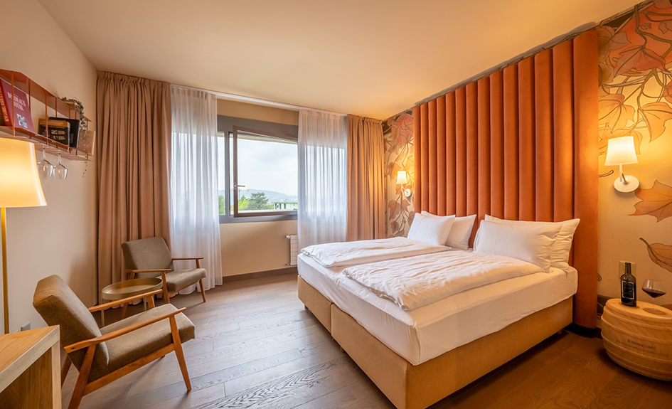 Une cave à vin avec plus de 1'000 étiquettes, des chambres et des espaces communs rénovés avec le thème du vin, et une étroite collaboration avec les plus importantes caves à vin de la région sont les points clés d'une offre vinicole et gastronomique authentique.