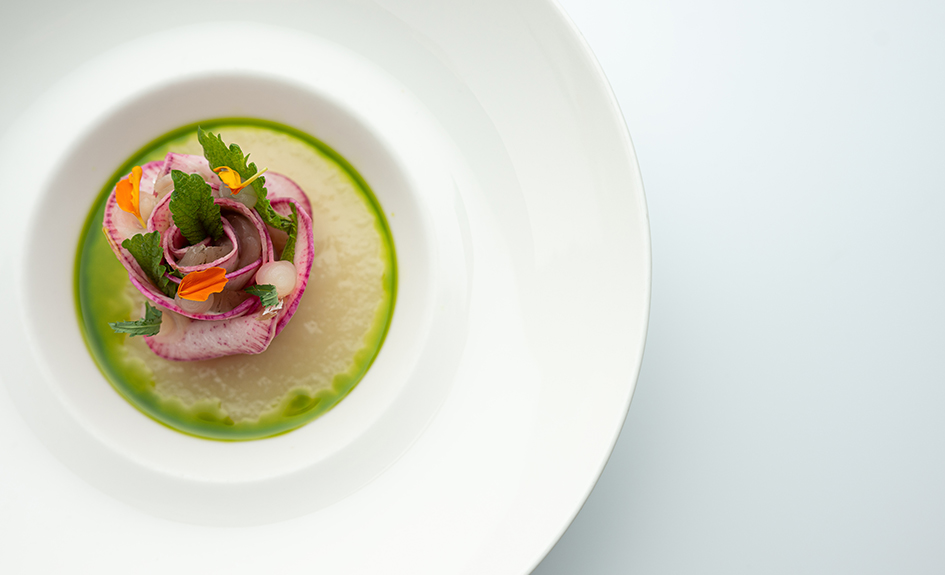 L’Abbaye de Talloires est un lieu unique où les odeurs du lac, des montagnes et des herbes du jardin laissent place à l’inspiration sublimée d’un cuisinier. Le Chef Yohei Osaka a composé pour vous une balade culinaire où s'exprime la sensualité des goûts, des couleurs et des odeurs, avec une cuisson d'une grande précision, des produits de qualité, une présentation épurée et le large spectre du choix de l'assaisonnement pour mieux développer les saveurs.