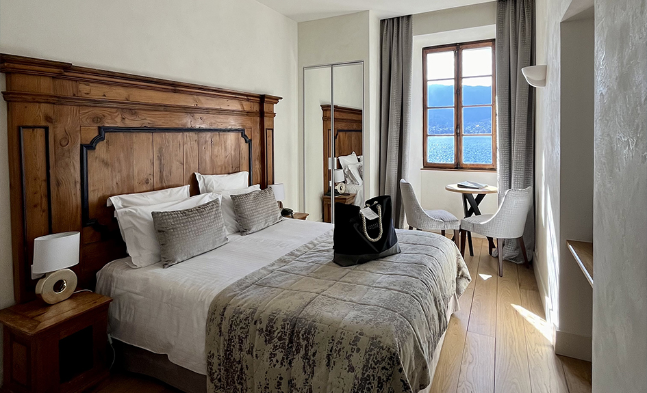 Décorées dans le respect de la tradition avec des matériaux nobles et disposant de tout le confort moderne, elles possèdent un balcon donnant soit sur le jardin, le village, ou encore les montagnes avec vue latérale sur le lac (à l’exception des 3 chambres donnant sur notre cloître intérieur).