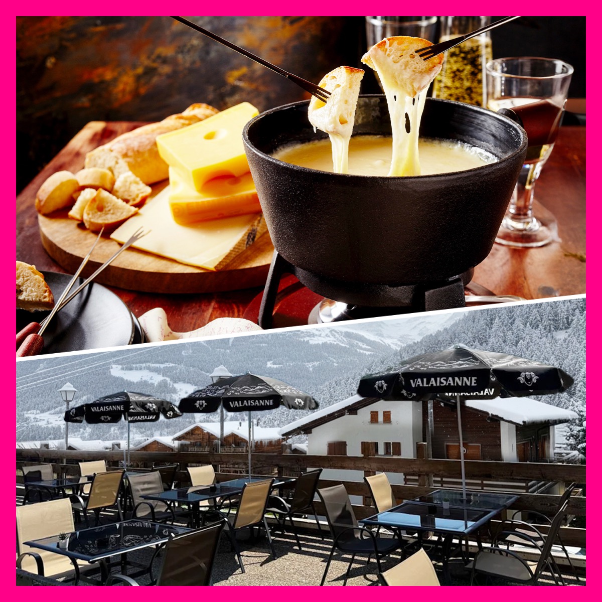 - Fromages : Anniviers, Vacherin, Gruyère (200gr par personne)