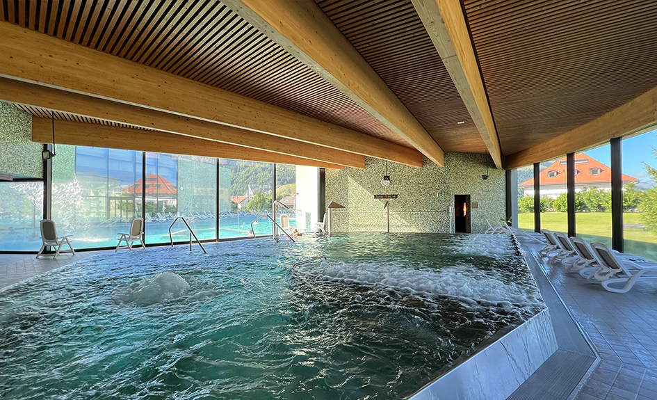Relié par un tunnel souterrain à l’Hôtel Cailler et dans un cadre magnifique, le Centre Thermal « Les Bains de la Gruyère » vous offre calme et relaxation.