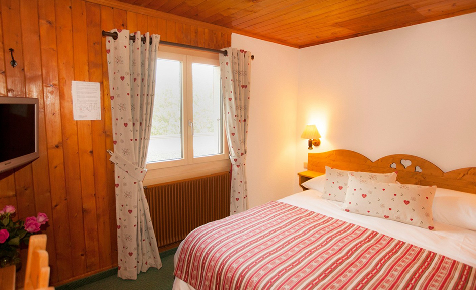 Profitez de l'ambiance reposante d'un véritable chalet suisse avec une de ces charmantes chambres doubles conçues pour votre confort, télévision à écran plat, Wifi et salle de bain privée.