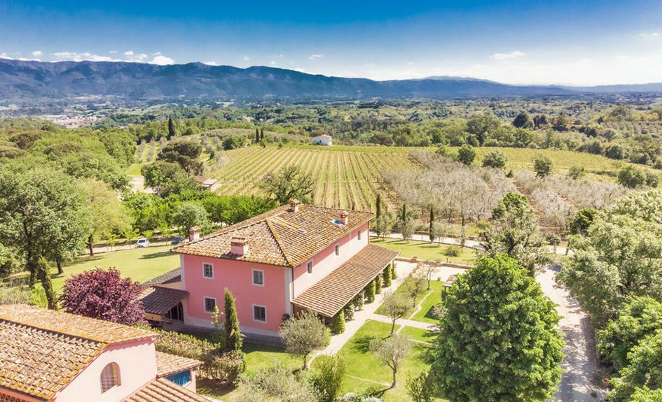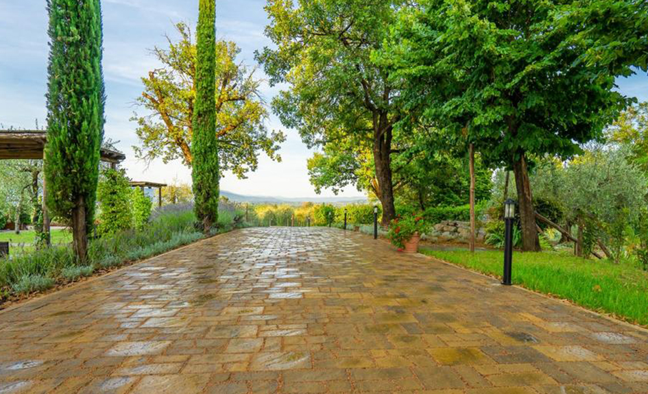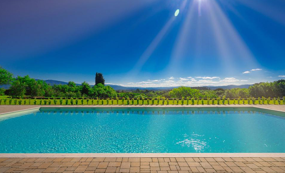 Dans le vaste et agréable parc, se trouvent les piscines, d'où l'on peut profiter d'une vue splendide sur les collines toscanes, le vignoble et l'oliveraie de la propriété.