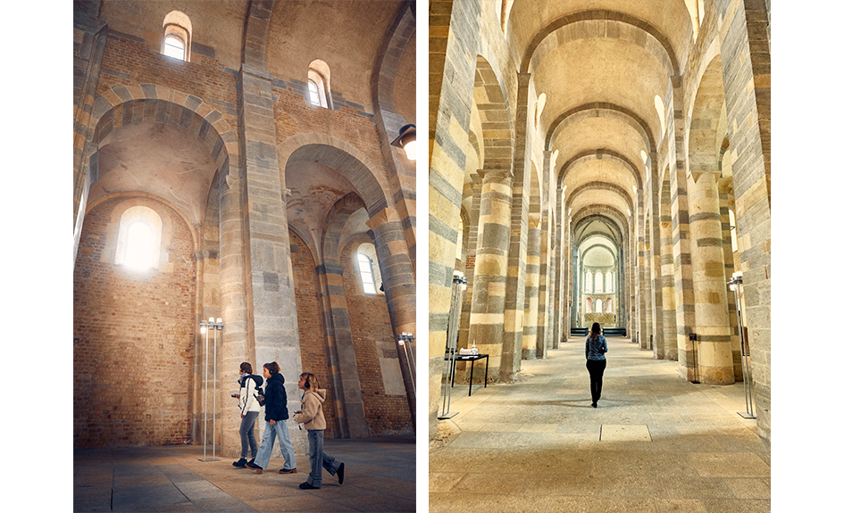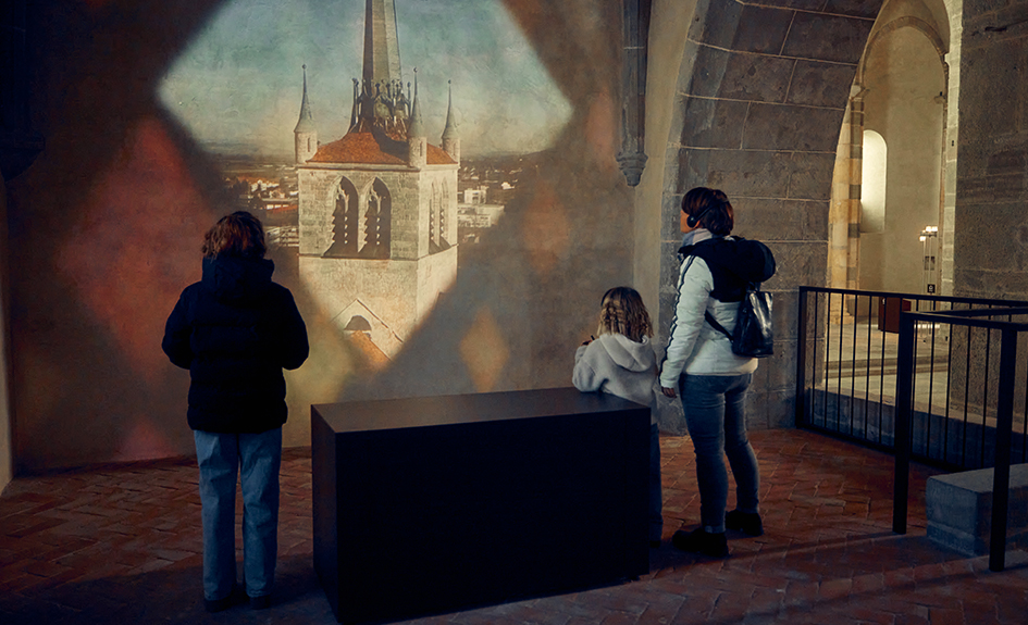Grâce à une scénographie audacieuse et à vingt points audioguidés immersifs et interactifs, petit·e·s et grand·e·s sont invité·e·s à explorer l’Abbatiale autrement, à leur rythme. Projections audiovisuelles, reconstitutions 3D, installations artistiques, jeux interactifs et expériences sensorielles jalonnent le parcours et rendent l’histoire accessible, vivante et captivante.