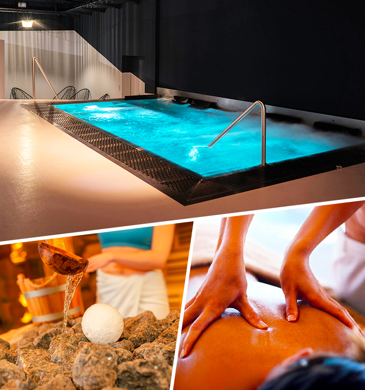 Dans une ambiance feutrée créée par une architecture design et contemporaine, vous vous évaderez du quotidien en suivant un parcours composé de hammams, saunas et jacuzzi.
