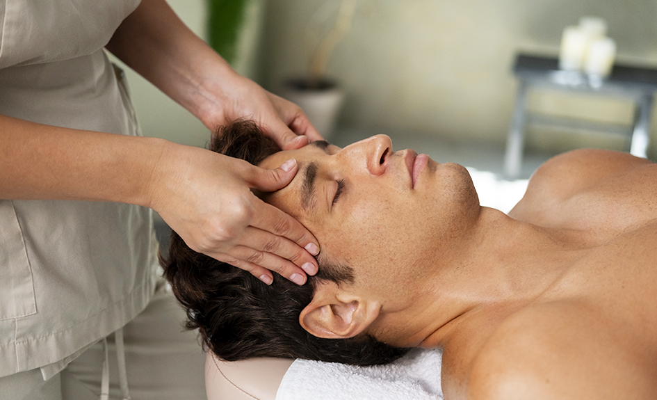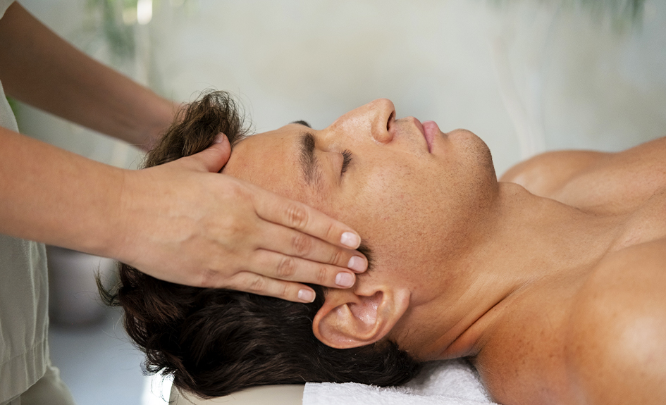 - Massage des tempes et du visage pour apaiser et détendre les traits