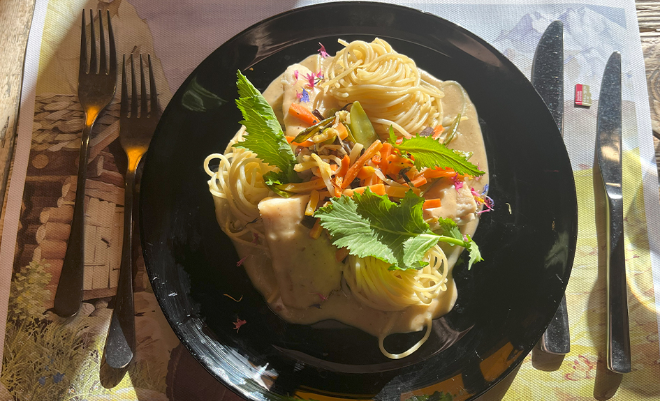 Vous avez la possibilité de manger sur la magnifique terrasse avec la vue imprenable sur les Alpes voisines.