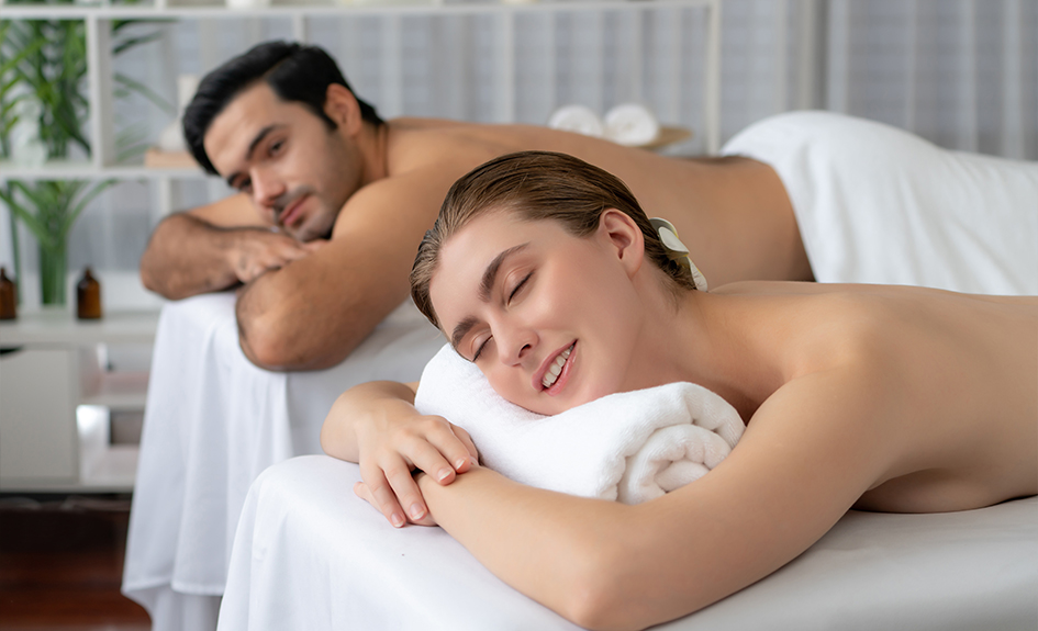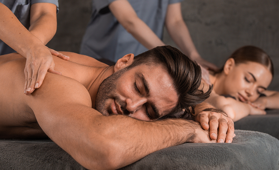 Massage relaxant réalisé à deux dans la même cabine.