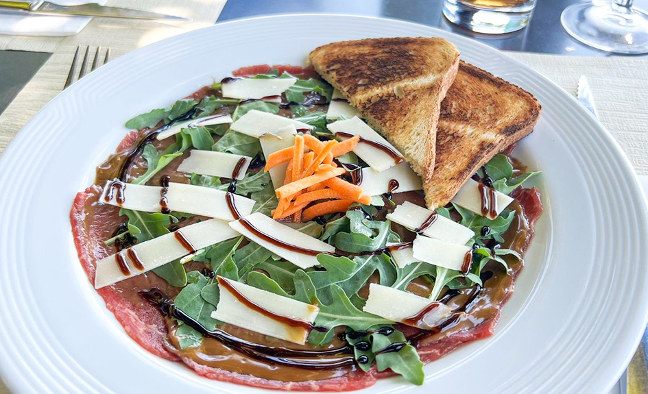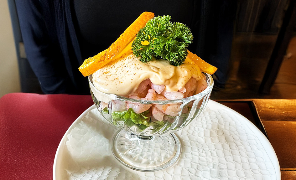 Entrée: Carpaccio de boeuf ou Coktail de crevettes