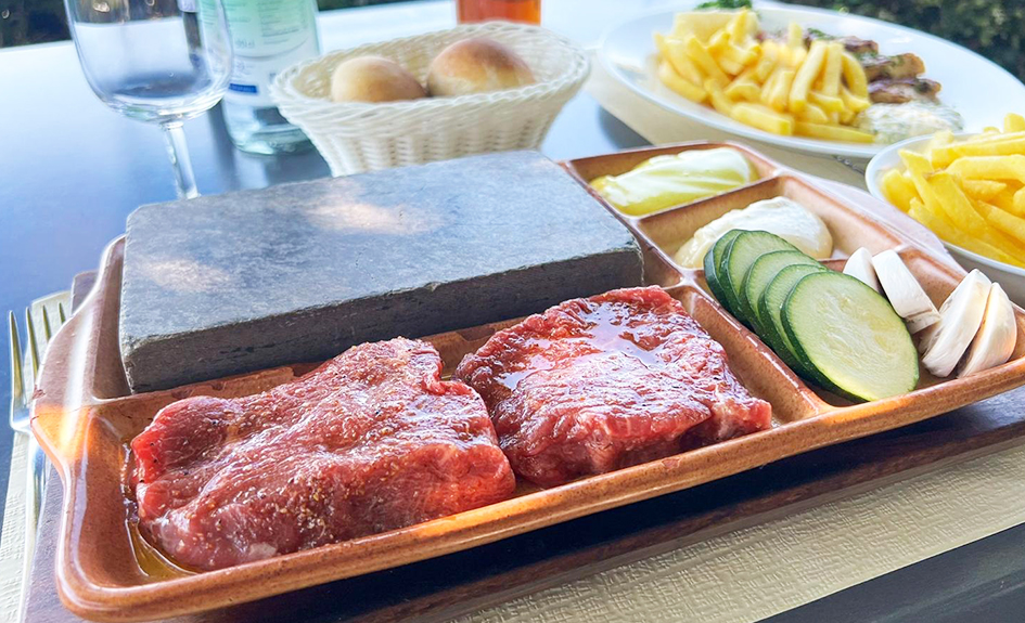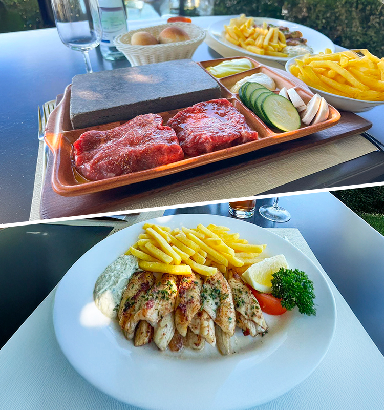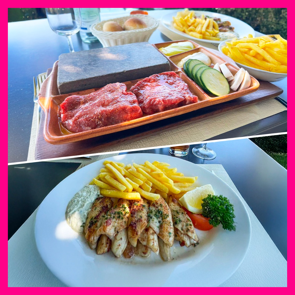 ► Menu Entrecôte sur ardoise ou Filets de Perches meunière avec entrée et dessert