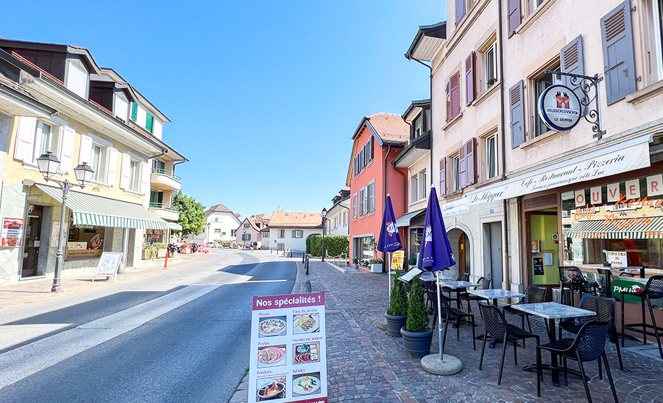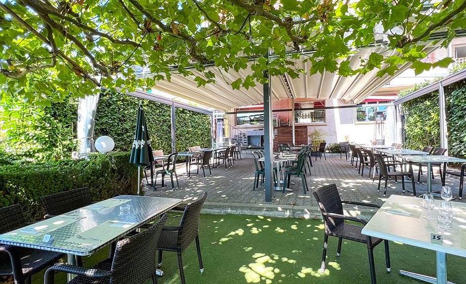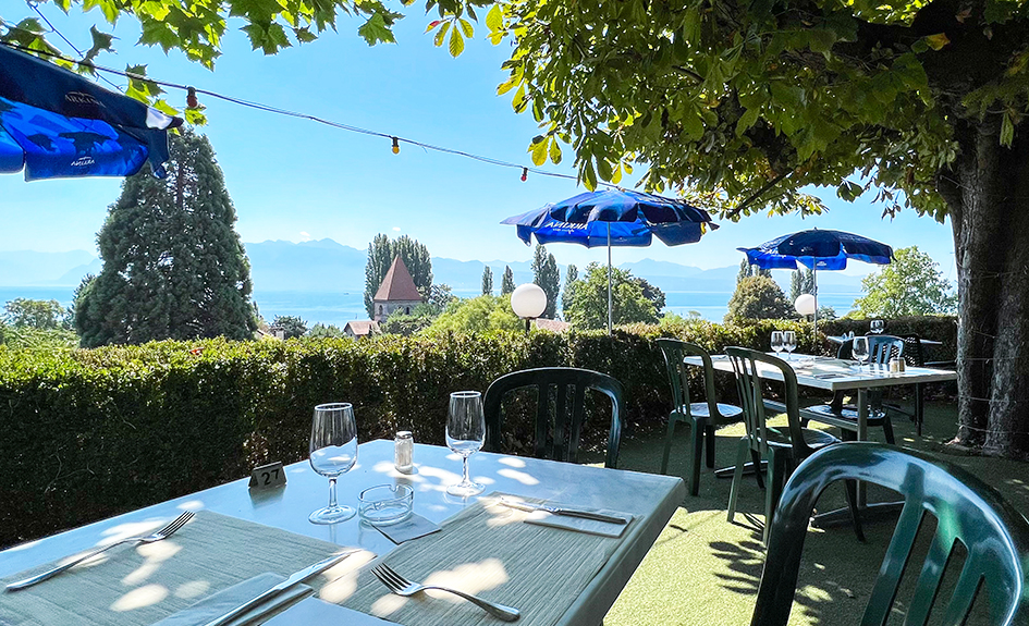 Café Restaurant avec belle terrasse hombragée, avec très belle vue sur le lac Léman.