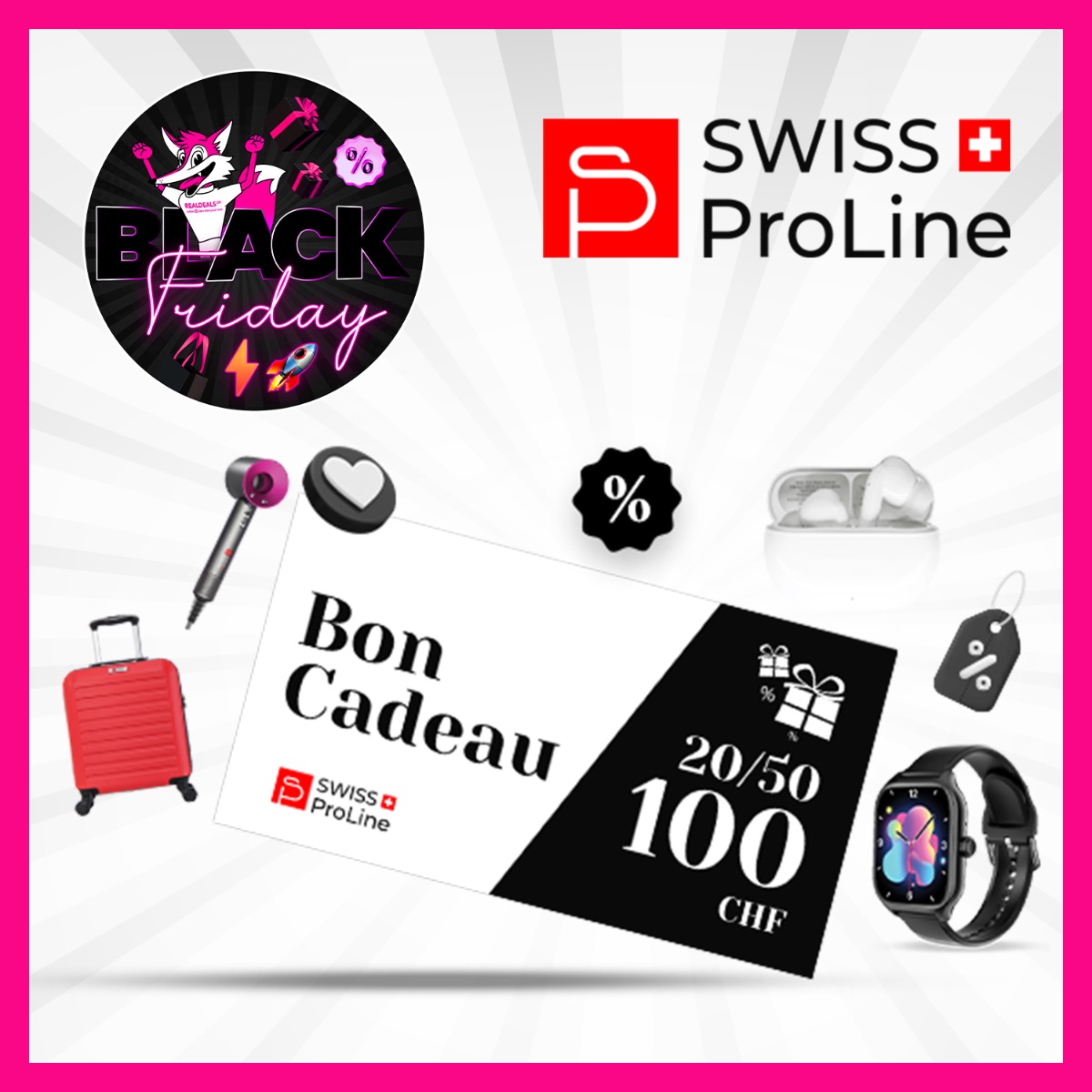 BlackFriday - Bons de CHF 20.-, CHF 50.- ou CHF 100.- valables sur tout le site Swiss ProLine