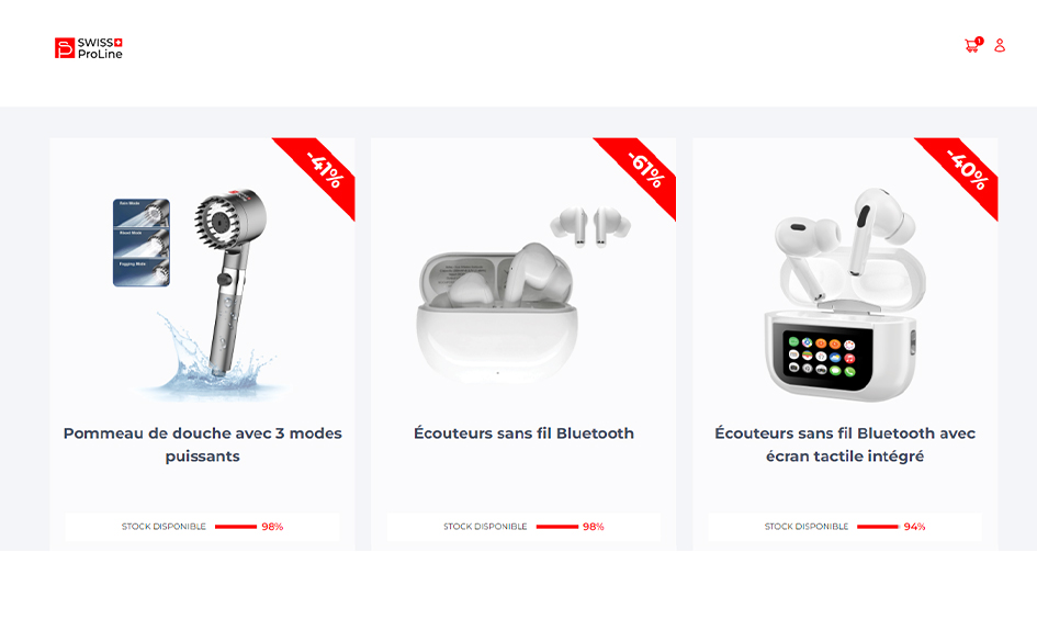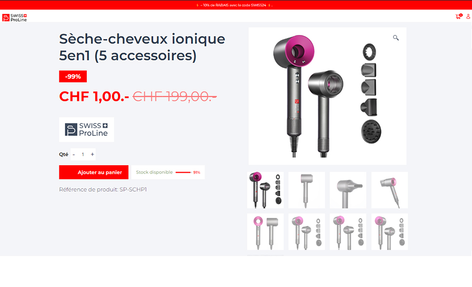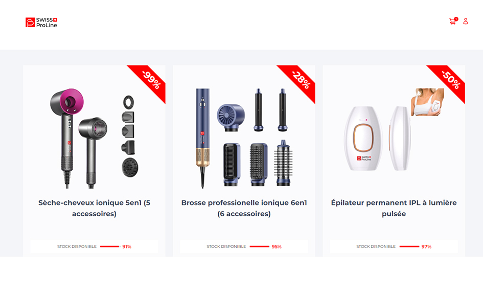 Swiss ProLine propose une gamme tendance, incluant des gadgets, des produits de soins & beauté, de l’éléctroménager, de la décoration, de l’électronique, du bricolage, des articles d’intérieur ou d’extérieur ainsi que des offres de déstockage.