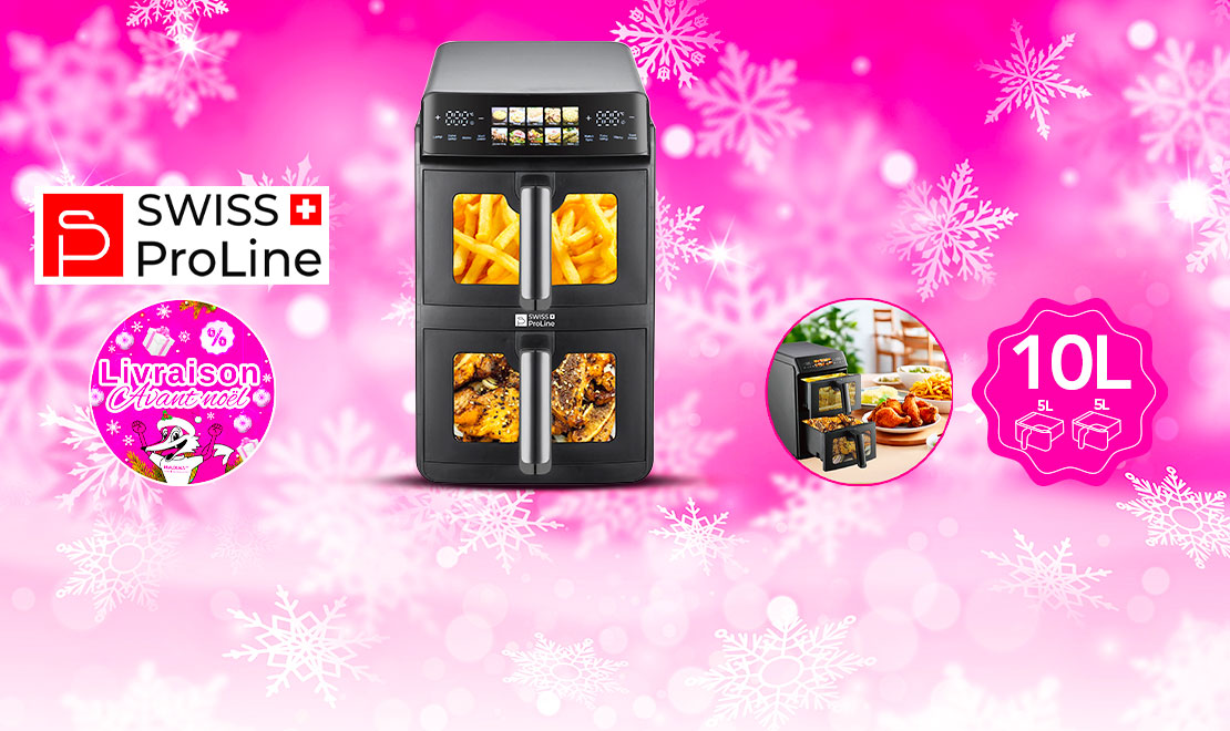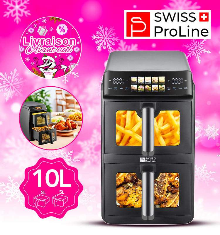 - Flash DEALS - Friteuse à air chaud Air Fryer 10L (sans huile) avec double compartiments superposés Swiss ProLine avec 75% de rabais