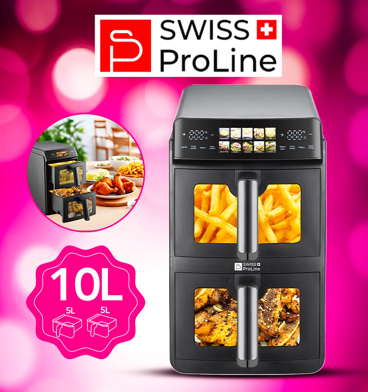 - Flash DEALS - Friteuse à air chaud Air Fryer 10L (sans huile) avec double compartiments superposés Swiss ProLine avec 75% de rabais