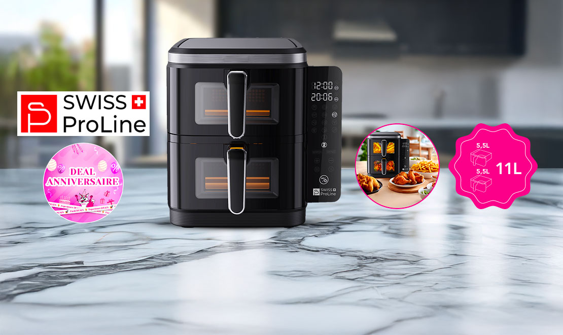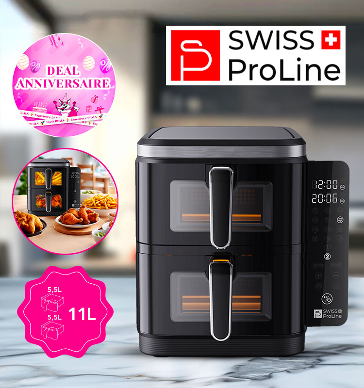 - Flash DEALS - Friteuse à air chaud Air Fryer 11L (sans huile) avec double compartiments superposés Swiss ProLine avec 80% de rabais