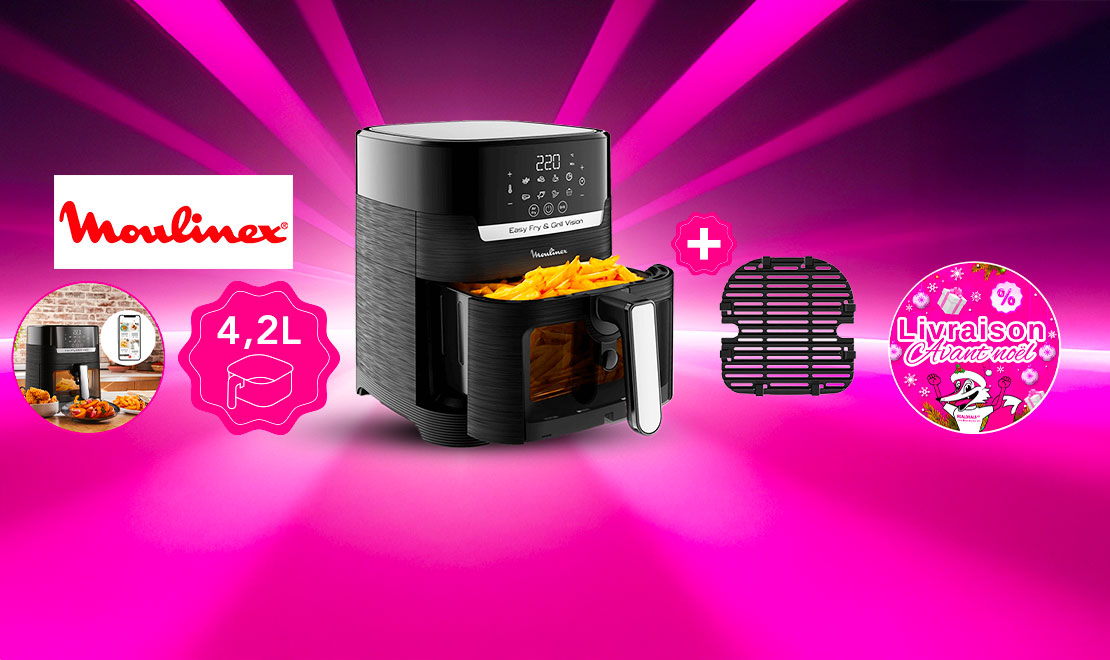 - Flash DEALS - Friteuse à air chaud Air Fryer 4,2L (sans huile) avec fenêtre MOULINEX avec 65% de rabais