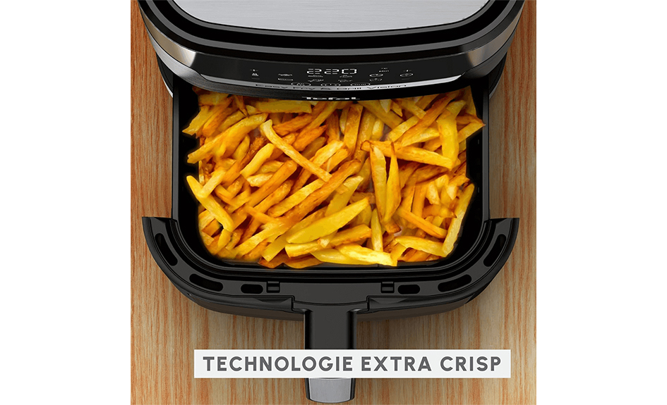 Besoin de croustillant ? Sa technologie Extra Crisp garantit des résultats dorés et savoureux avec peu ou pas d’huile, réduisant jusqu’à 99 % de matières grasses ajoutées par rapport à une friteuse classique.